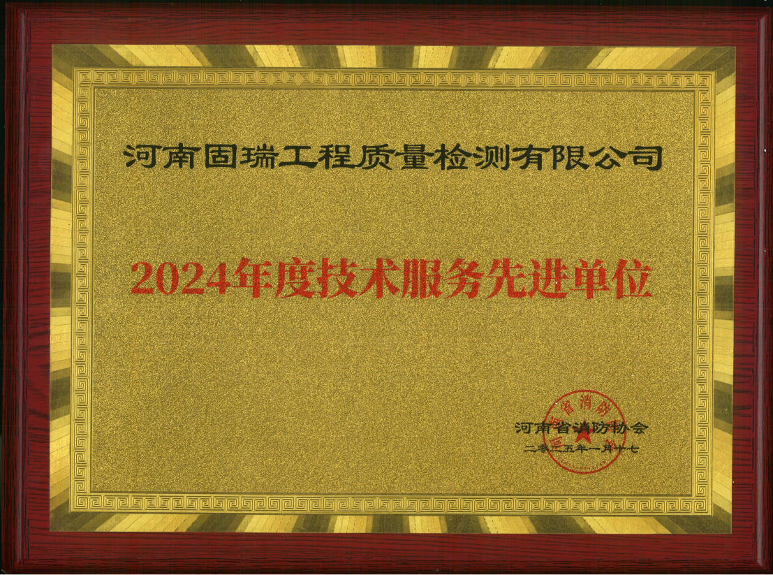 熱烈祝賀河南固瑞工程質量檢測有限公司榮獲河南省消防協會2024年度技術服務先進單位?。。?